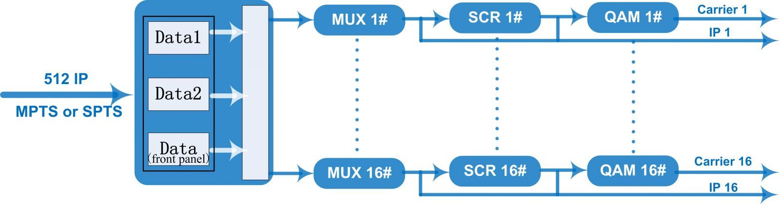 * 16 non-adjacent QAM carriers output, compliant to DVB-C (EN 300 429) and ITU-T J.83 A/B