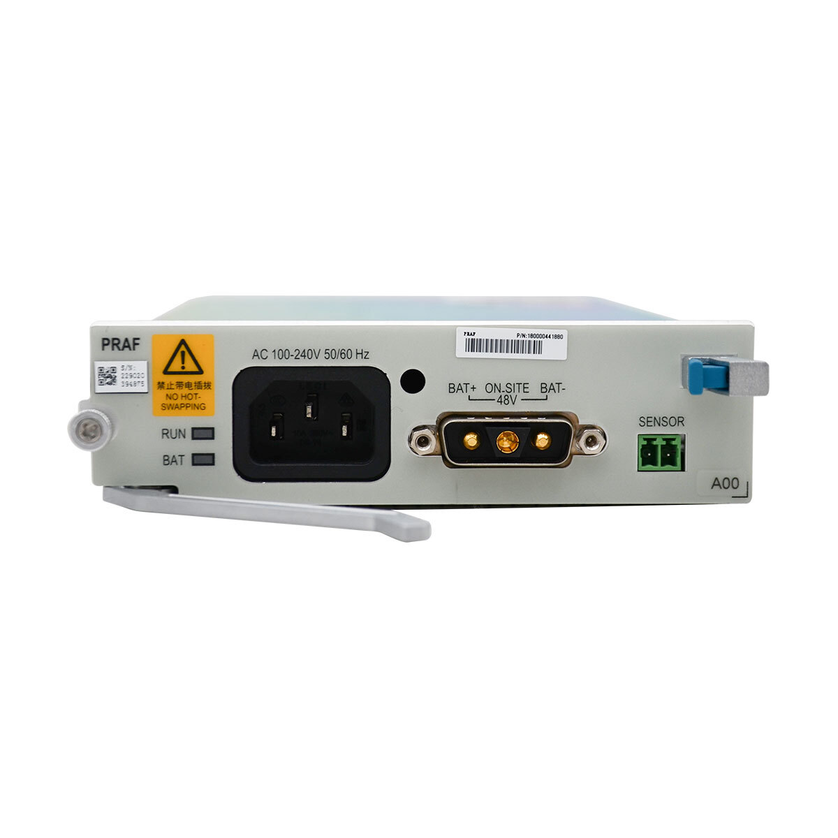 Modulul de alimentare ZTE PRAF este sursa de alimentare pentru OLT-ul modular ZTE C620. Scopul principal al acestui modul este de a converti sursa de alimentare de 220V la 48V, necesară pentru șasiul ZXA10 C630. Modulul de alimentare PRAF are o funcționalitate de înlocuire la cald și este capabil să alimenteze complet șasiul C620 și toate plăcile instalate în acesta. ZXA10 C620 este o platformă de acces optic de capacitate mică, are un design compact, un design industrial de ultimă generație, o arhitectură de ultimă generație și o acoperire completă a scenariilor. Are o arhitectură de router complet distribuită și programabilă pentru a suporta, de asemenea, 4K/8K/VR, FMC, SDN/NFV/virtualizare. ZXA10 C620 are o înălțime de 2U și un șasiu de 19″.